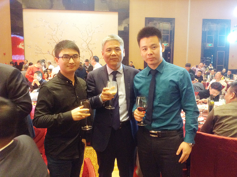 中膳團(tuan)(tuan)餐產業(ye)聯盟企業(ye)廣州上善餐飲企業(ye)管理有限(xian)公(gong)司總經理孫志成(中)與(yu)中膳集團(tuan)(tuan)蔣國霆合影